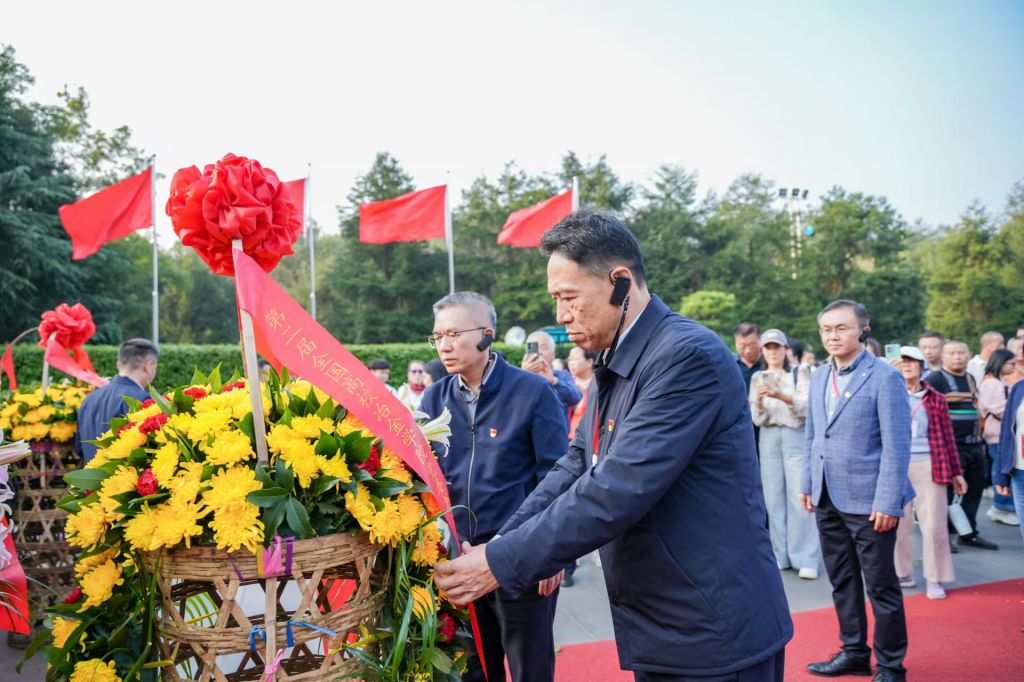 下午,赴湖南韶山参观毛主席故居、毛泽东铜像广场等红色教育基地开展学习。游志勇作为高校书记代表为毛主席铜像敬送花篮。