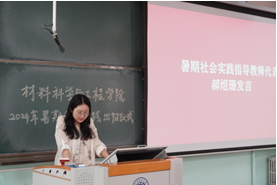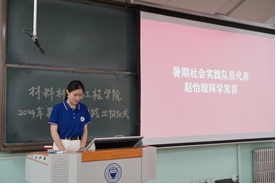 指导老师代表郝煜珊在发言中阐释了学生参与暑期社会实践的意义,她指出,青春只有在为祖国和人民的真诚奉献中,才能更加绚丽多彩。希望队员们可以深入实践地,切实帮助当地群众解决实际困难;在实践过程中提升风险防范意识,树立好学校、学院的良好形象。